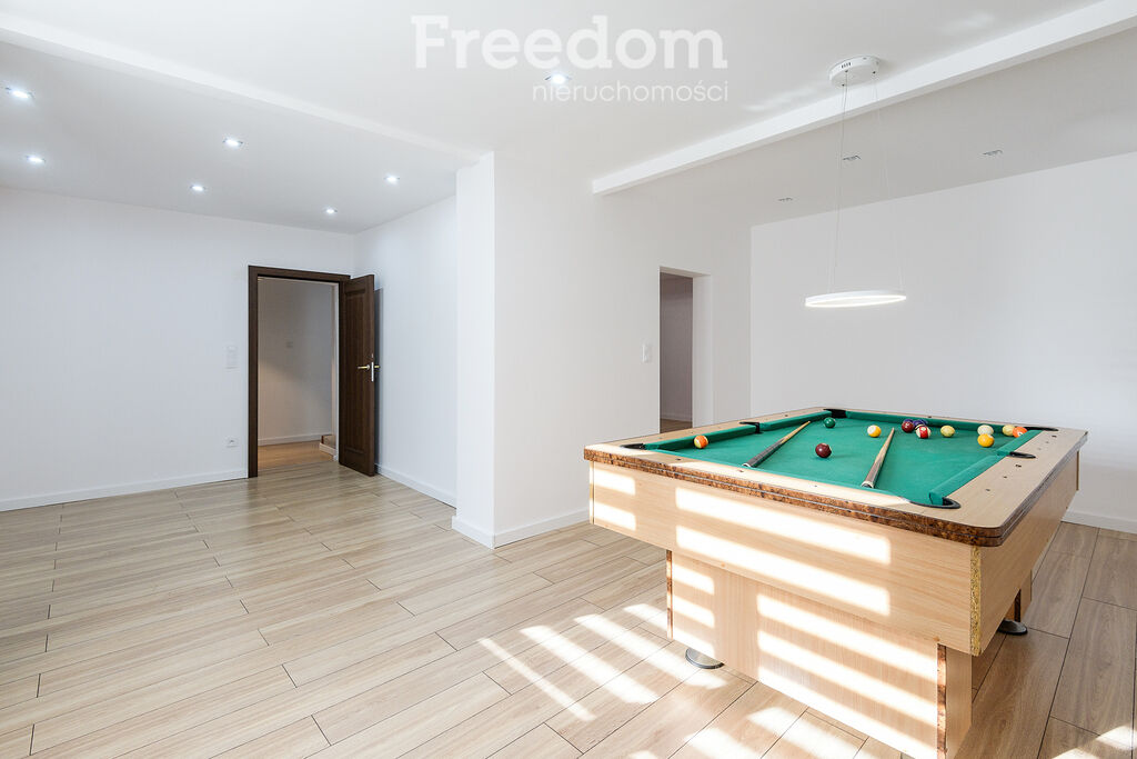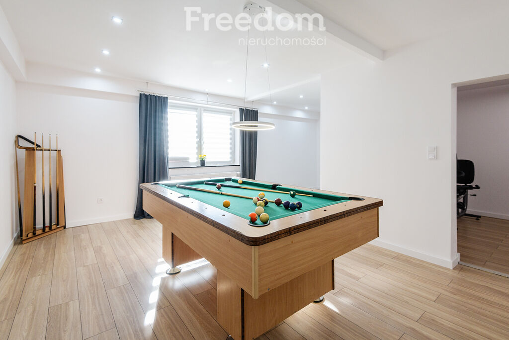 Duży salon, kuchnia, łazienka, toaleta, pokój bilardowy, pokój